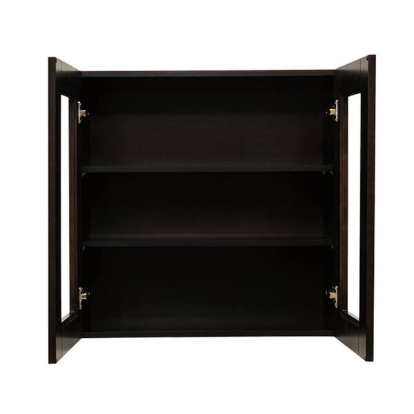 Anchester Assembled 36 in. x 30 in. x 12 in. Wall Mullion Door Cabinet with 2 Doors 2 Shelves in Dark Espresso
