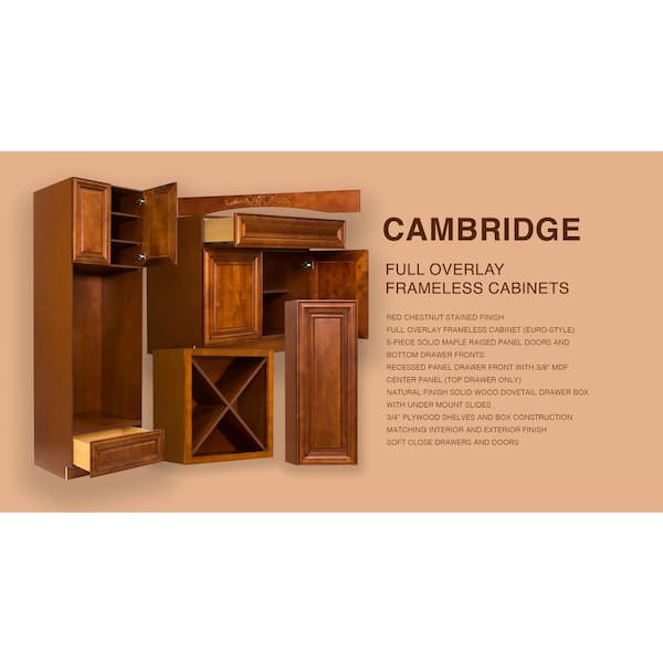 Cambridge Assembled 18x34.5x24 in. Base Cabinet with 3 Drawers in Chestnut