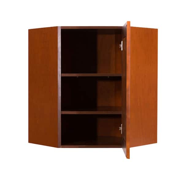 Cambridge Assembled 24 in. x 30 in. x 12 in. Wall Diagonal Corner Cabinet with 1-Door 2-Shelves in Chestnut