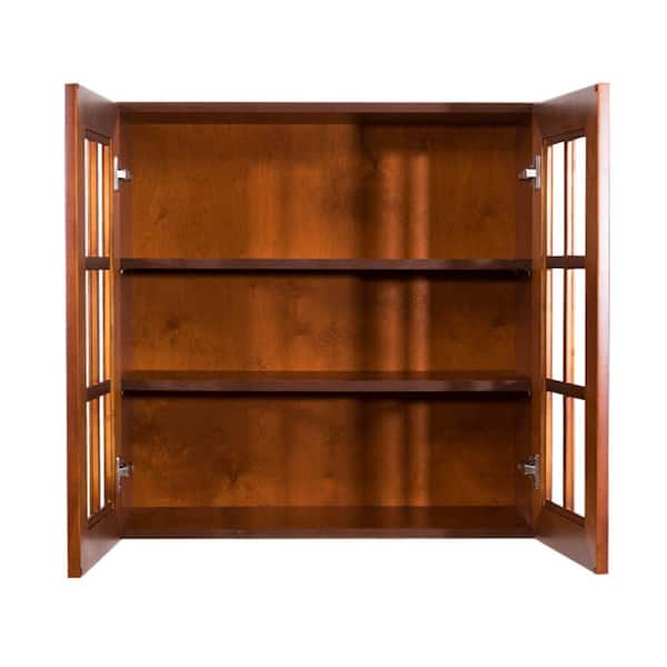 Cambridge Assembled 27x30x12 in. Wall Mullion Door Cabinet with 2 Doors 2 Shelves in Chestnut