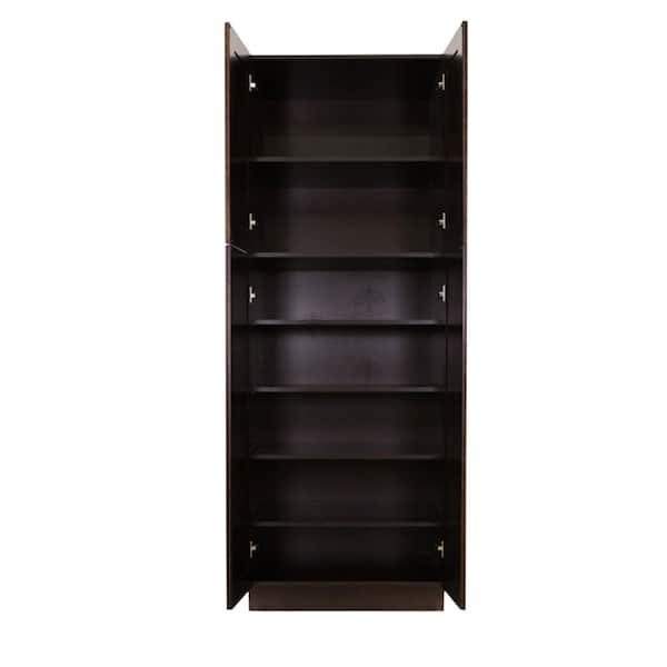 Edinburgh Espresso Plywood Raised Panel Stock Assembled Tall Pantry Kitchen Cabinet (24 in. W x 96 in. H x 24 in. D)