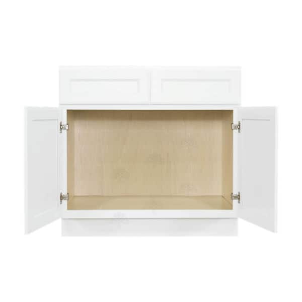 LaPort Assembled 36x34.5x24 in. Sink Base Cabinet with 2 Doors and 2 Decoration Drawer Faces in Classic White