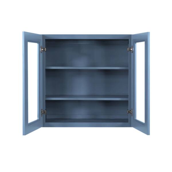 Lancaster Blue Plywood Shaker Stock Assembled Wall Glass-Door Kitchen Cabinet 27 in. W x 12 in. D x 30 in. H