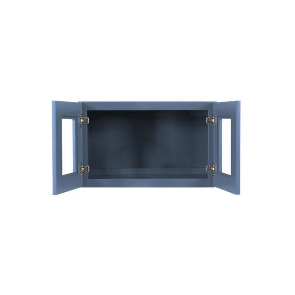 Lancaster Blue Plywood Shaker Stock Assembled Wall Glass-Door Kitchen Cabinet 30 in. W x 12 in. D x 15 in. H