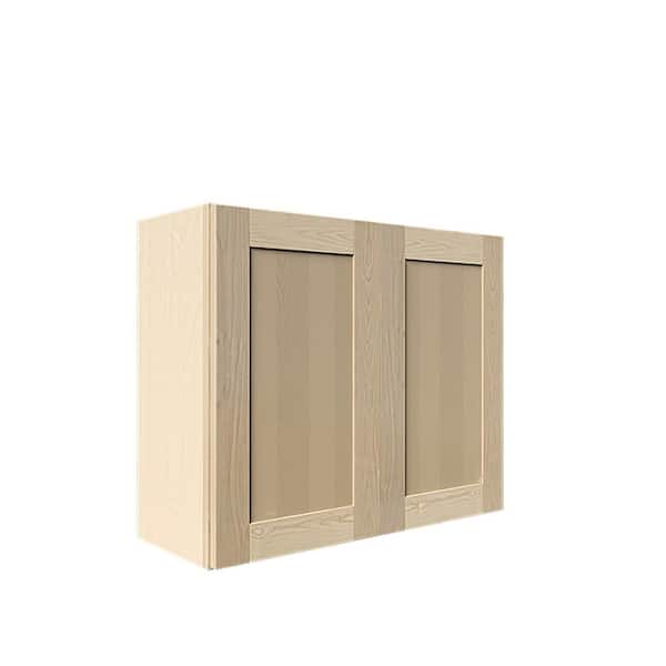 Lancaster Shaker 33 in. x 27 in. x 12 in. Assembled Wall Cabinet with 2-Doors in Natural Wood