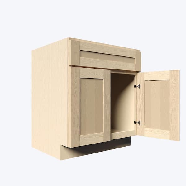 Lancaster Shaker Assembled 27 in. x 34.5 in. x 24 in. Sink Base Cabinet with 2-Doors in Natural Wood