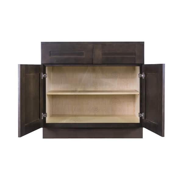 Lancaster Shaker Assembled 33 in. x 34.5 in. x 24 in. Base Cabinet with 2 Doors and 2 Drawers in Vintage Charcoal