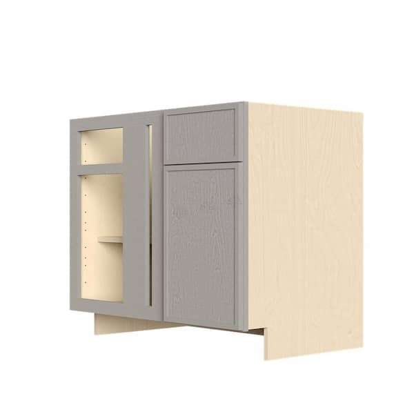 Slim Shaker Assembled 39 in. W x 34.5 in. H x 24 in. D Blind Corner Base Kitchen Cabinet in Gray