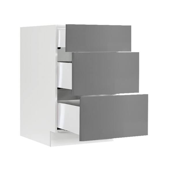 Valencia Assembled 15 in. W x 24 in. D x 34.5 in. H in Gloss Gray Plywood Assembled 3-Drawer Base Kitchen Cabinet