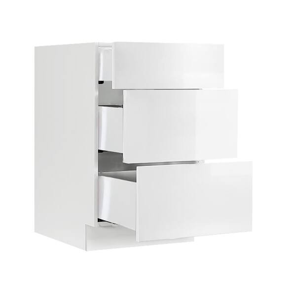 Valencia Assembled 18 in. W x 24 in. D x 34.5 in. H Gloss White Plywood Assembled 3-Drawer Base Kitchen Cabinet