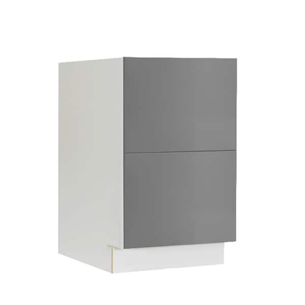 Valencia Assembled 30 in. W x 24 in. D x 34.5 in. H in Gloss Gray Plywood Assembled 2-Drawer Base Kitchen Cabinet