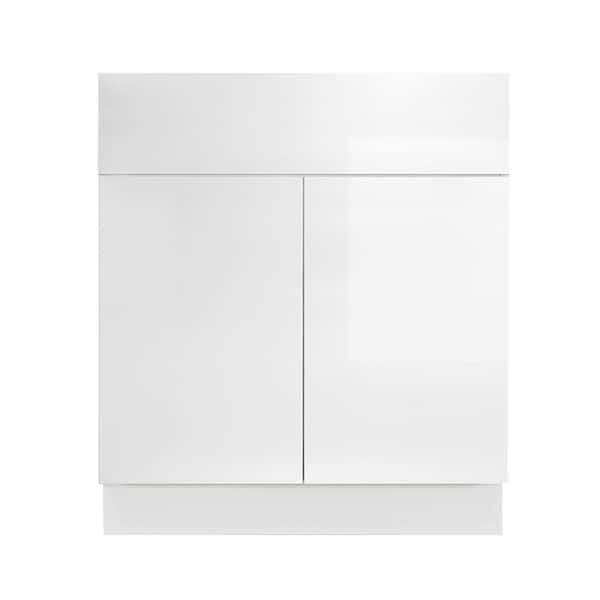 Valencia Assembled 30-in. W x 24-in. D x 34.5-in. H in Gloss White Plywood Assembled Sink Base Kitchen Cabinet