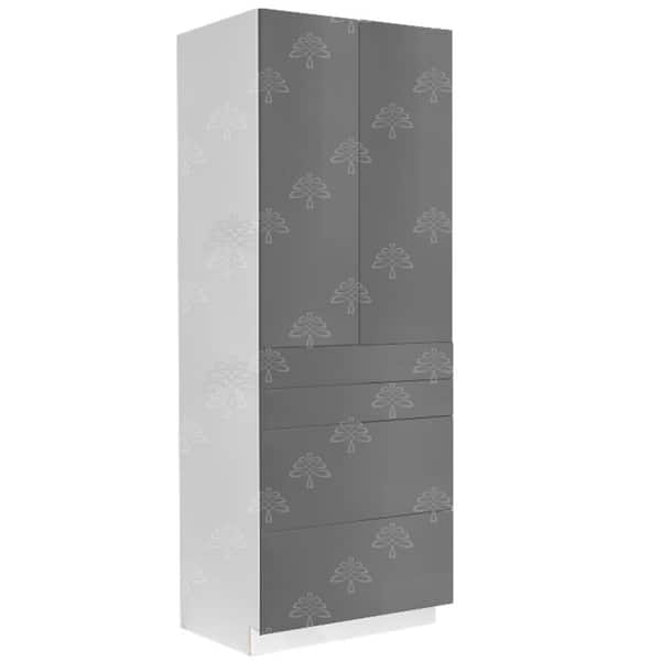 Valencia Assembled 30 in. W x 24 in. D x 96 in. H in Gloss Gray Plywood Assembled 3-Drawer Pantry Kitchen Cabinet