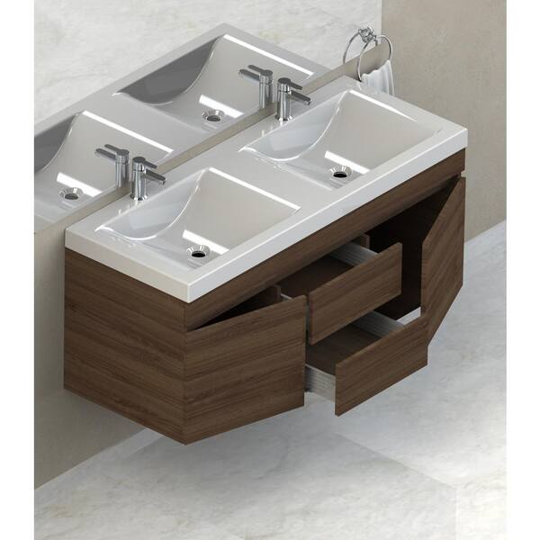 Viteli + Siena 48 in. W x 19 in. D x 29 in. H Bath Vanity in Walnut with Cultured Marble Dual Basin Vanity Top in White