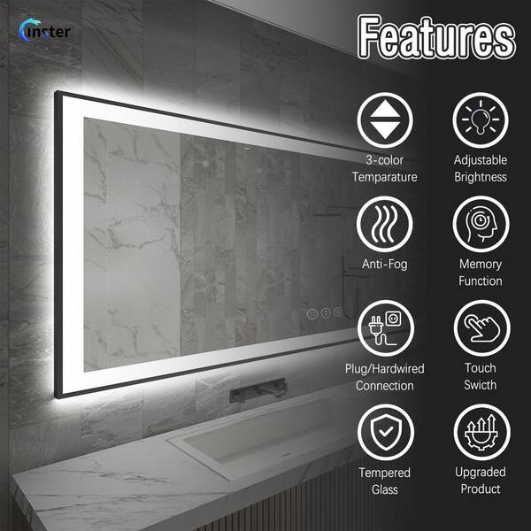 LINE 82 in. W x 32 in. H Rectangular Black Framed Wall Mount Anti-Fog Bathroom Vanity Mirror with LED Light and Memory