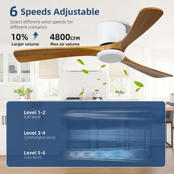 42 in. Indoor White Low Profile Flush Mount Ceiling Fan with Reversible DC Motor and Remote