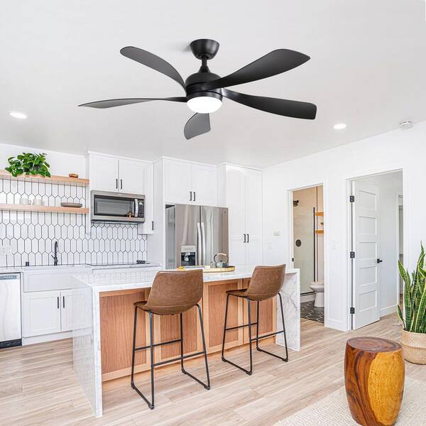 52 In. Indoor Black Durable ABS Blades Integrated LED Ceiling Fan with Remote Control and Reversible DC Motor