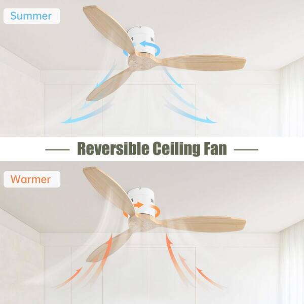 52 In. Indoor White Noiseless 3 Solid Wood Blades Ceiling Fan with Remote Control and Reversible DC Motor
