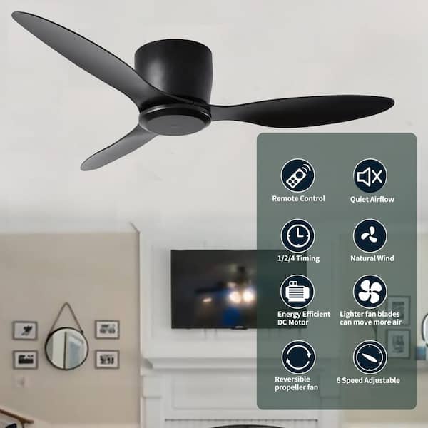 52 in. Indoor Black Low Profile Ceiling 6 Fan Speeds Ceiling Fan with Remote and Timer for Living Room/Kitchen/Bedroom