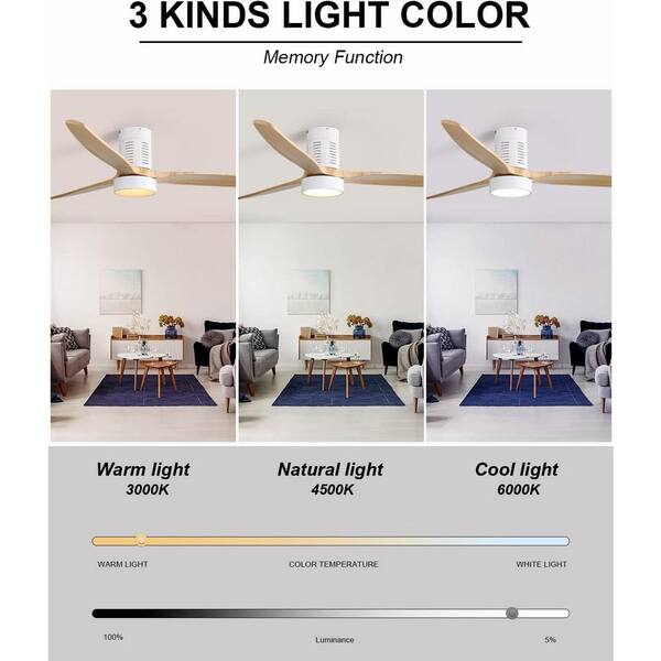 52 in. Indoor White Solid Wood Blade Reversible DC Motor Ceiling Fan with LED Light and Remote Control