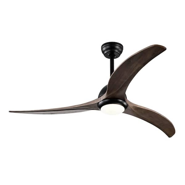 52 in. Integrated LED Indoor/Outdoor Matte Black Low Profile Ceiling Fan with Solid Wood Blades and Remote Control