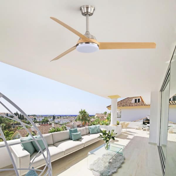 52 in. Smart Indoor Brushed Nickel 3 ABS Blades Integrated LED Ceiling Fan with Remote Control, and Reversible DC Motor