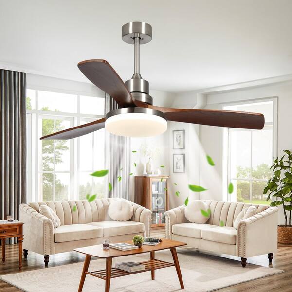 52 in. Wood Smart Indoor Nickel Ceiling Fan with 3-Colors LED Light/ Dimmer and DC motor and APP/Remote/Memory Function