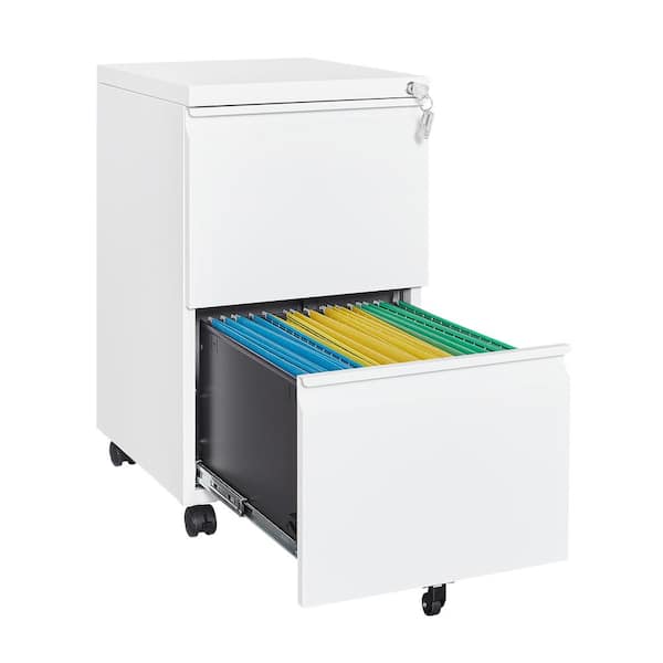 14.57 in. W x 26.18 in. H x 17.32 in. D White Freestanding Cabinet 2 Drawer Mobile Filling Cabinet with Lock and Wheels