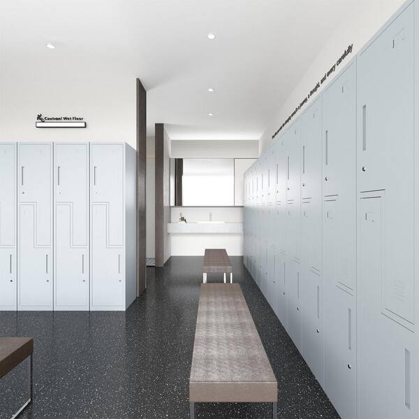 2-Tier Metal Locker for Home, Dressing Room, 71 in. Steel L-Shape Storage Lockers with 2 Door for Employees