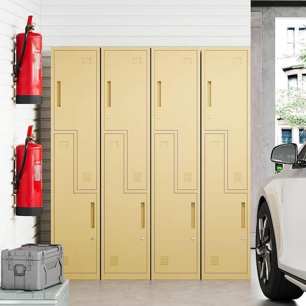 2-Tier Metal Locker for Home, Dressing Room, 71 in. Steel L-Shape Storage Lockers with 2 Door for Employees