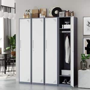 3-Tier Metal Locker for Home, Dressing Room, 71 in. Steel Storage Lockers with 1 Door for Employees (Grey and White)