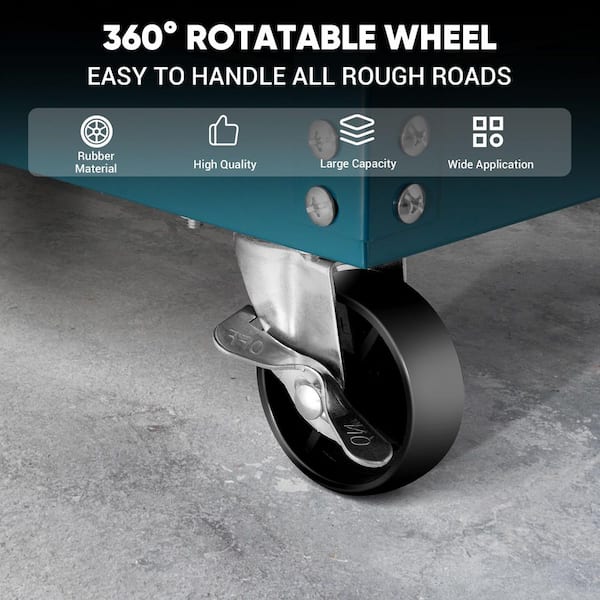 29.5 in. Tool Carts 3 Tire Rollin 330 lbs. with Lockable Storage Drawer Bleu