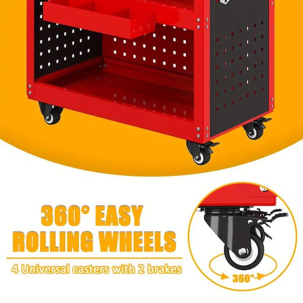 Tool Chests and Carts Rolling Tool Cart With Pegboard-500 lbs. Capacity Storage Organizer for Tools