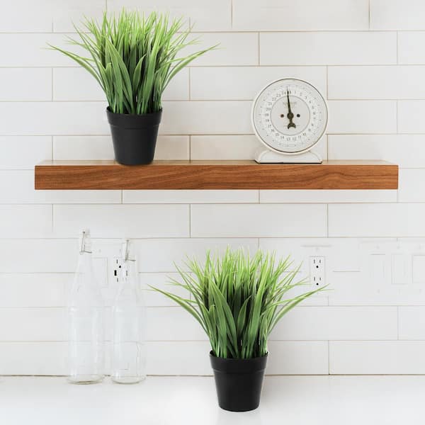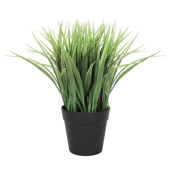 10 in. Artificial Wheat Grass Leaf Plant Arrangement in Black Pot (Set of 2)