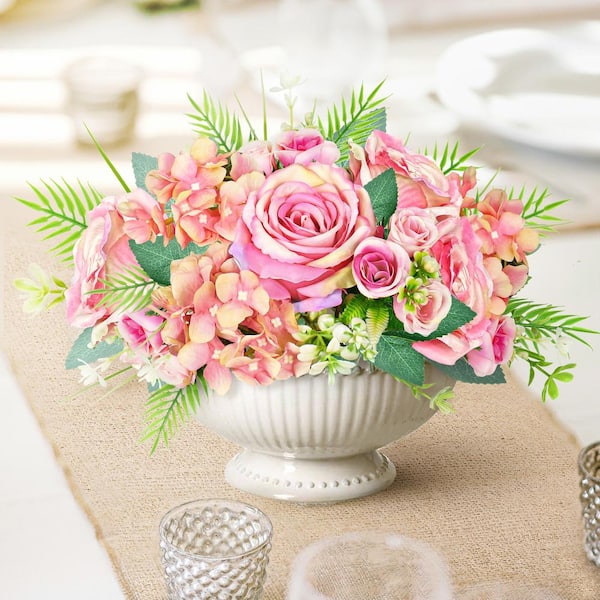 11 in. Fuchsia Pink Artificial Delicate Mixed Rose Hydrangea Flower Stem Bush Bouquet (Set of 4)