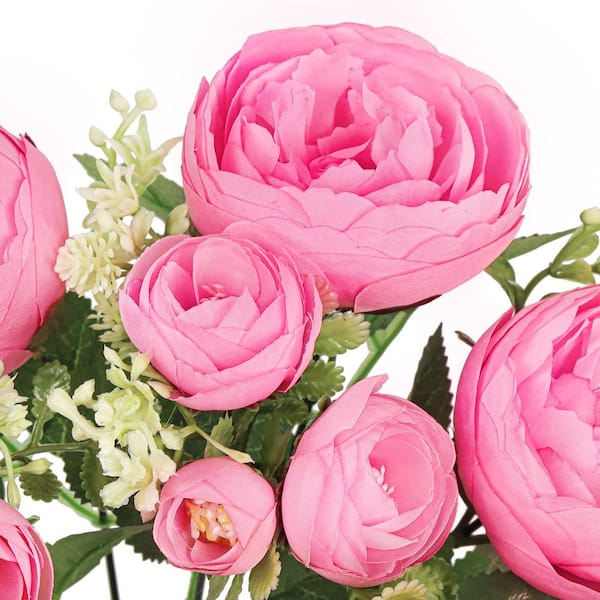 12 in. Pink Artificial Peony Flower Stem Bush Bouquet (Set -3)