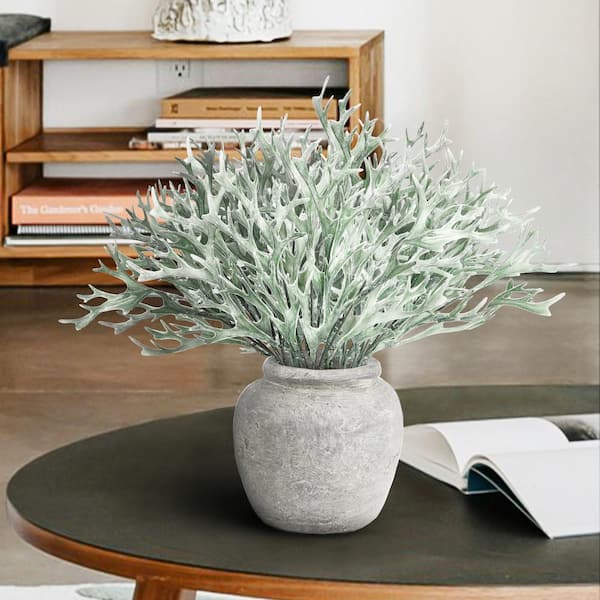 13 in. Frosted Green Artificial Staghorn Leaf Stem Plant Greenery Foliage Bush (Set of 6)