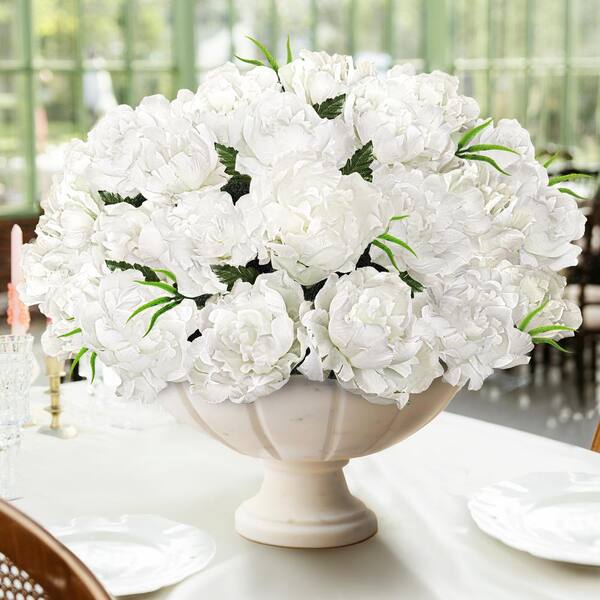 14 in. White Artificial Open Peony Flower Stem Bush Bouquet (Set of 12)