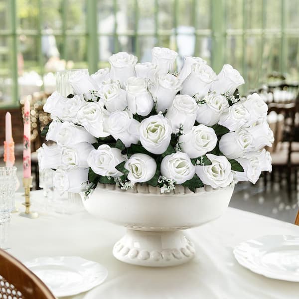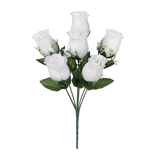 14 in. White Artificial Rose Bud Flower Stem Bush Bouquet (Set of 12)