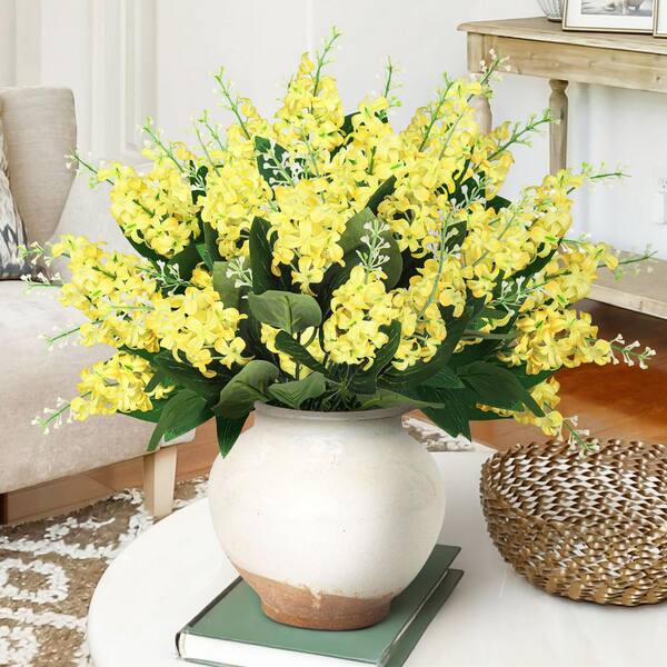 15 in. Yellow Artificial Stock Flower Stem Bush Bouquet (Set of 12)