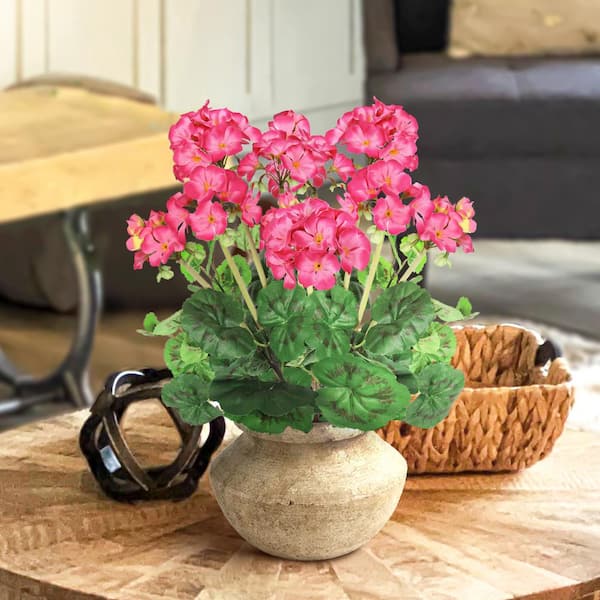 16 in. Beauty Pink Artificial Geranium Flower Stem Bush Bouquet Set of 2