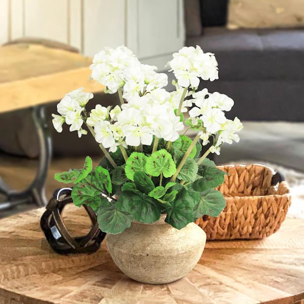 16 in. Cream White Artificial Geranium Flower Stem Bush Bouquet Set of 2