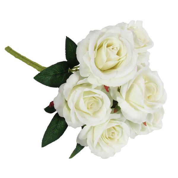 16 in. Cream White Artificial Velvet Rose Flower Stem Bush Bouquet (Set-2)
