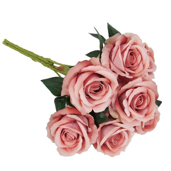 16 in. Dusty Rose Red Artificial Velvet Rose Flower Stem Bush Bouquet (Set-2)