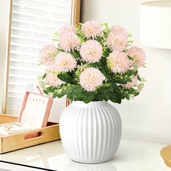 16 in. Pink Peach Artificial Pom Mum Flower Stem Bush Bouquet Set of 3