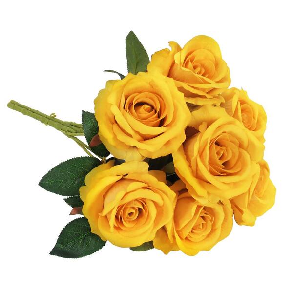 16 in. Yellow Artificial Velvet Rose Flower Stem Bush Bouquet (Set-2)