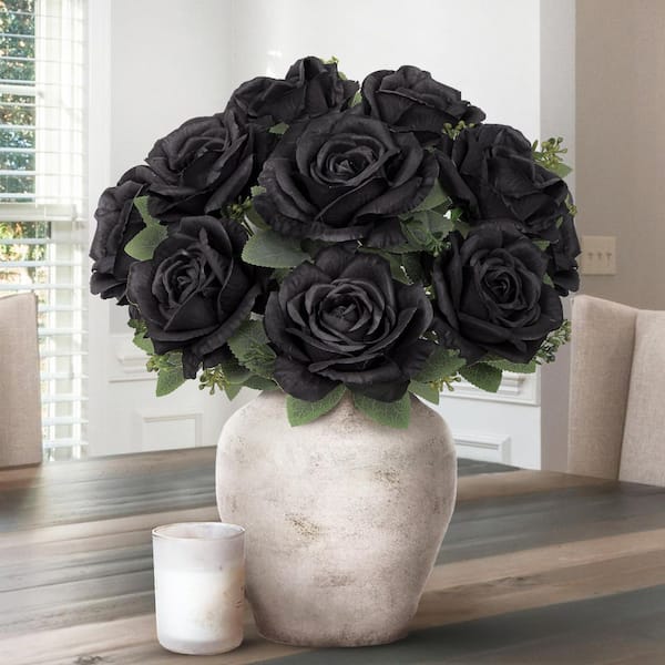 17 in. Deluxe Black Artificial Elegant Rose Flower Stem Bush Bouquet (Set of 2)