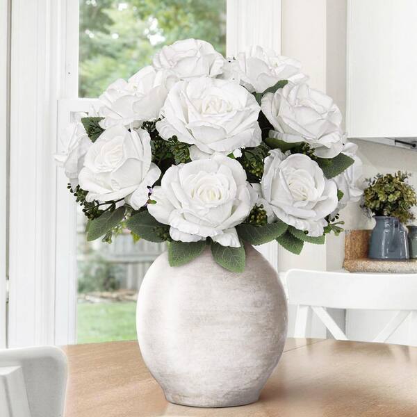 17 in. Deluxe White Artificial Elegant Rose Flower Stem Bush Bouquet (Set of 2)