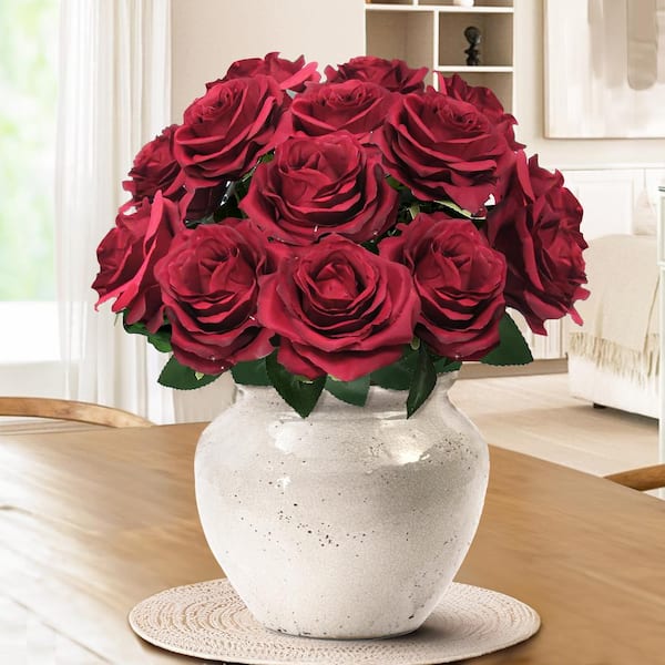 18 in. Deluxe Burgundy Artificial Queen Rose Flower Stem Bush Bouquet (Set of 2)