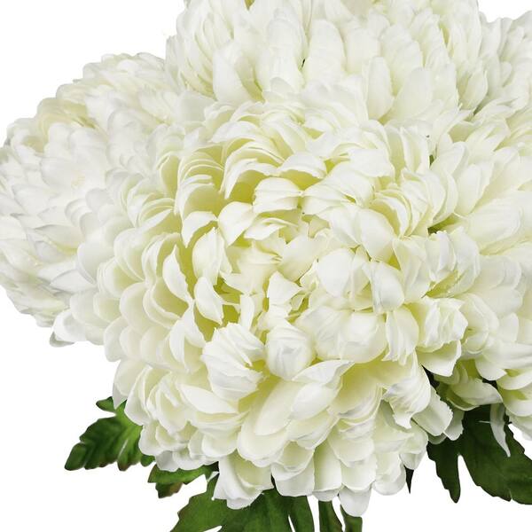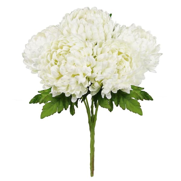 18 in. Deluxe Cream White Artificial Chrysanthemum Flower Stem Bush Bouquet (Set-2)